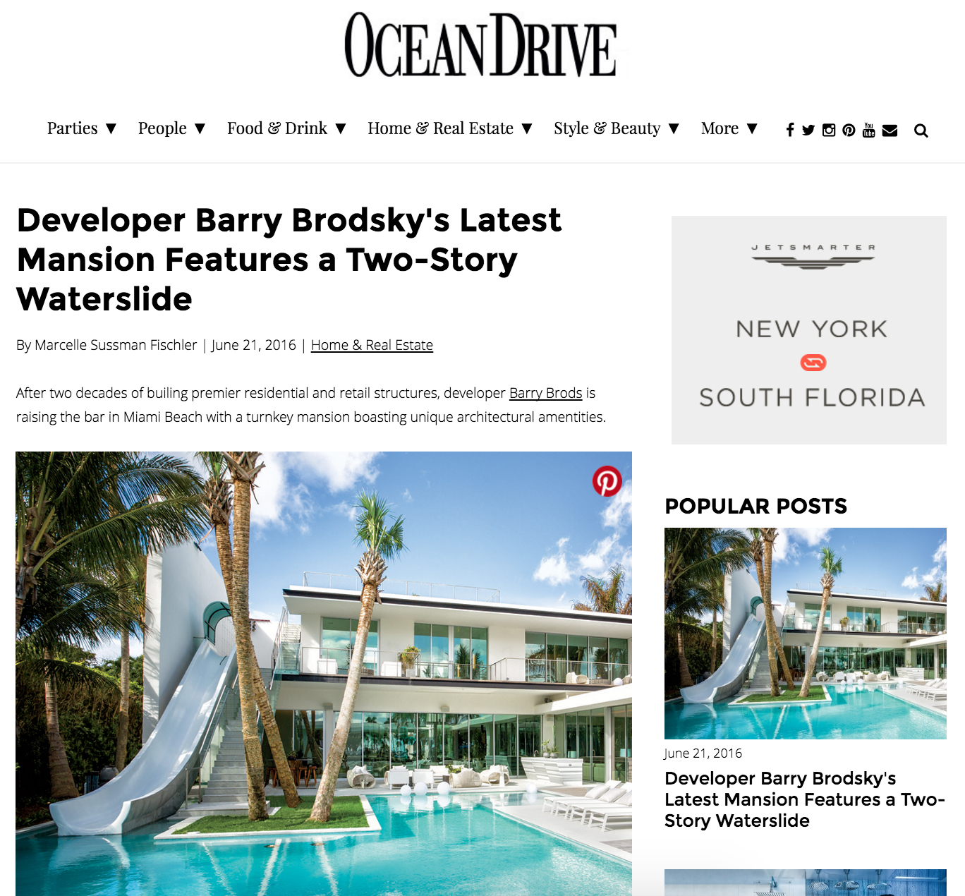 This architecturally distinct home located in one of the most exclusive neighborhoods in Miami Beach, was the creation of Developer Barry Brodsky, and built by his company, Brodson Construction. The company is recognized for stunning high-end projects throughout Miami, both commercial and residential, inclusive of countless sophisticated homes including 2068 North Bay Road, restaurants such as Juvia and numerous retail spaces in Bal Harbour Shops including Gucci, Tiffany & Co., Valentino and more.